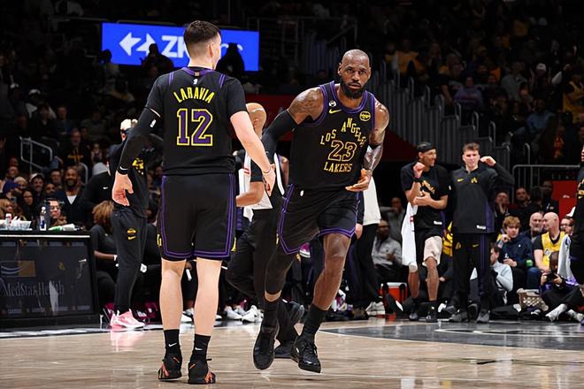 本场比赛中,湖人的替补侧翼新星杰克-拉拉维亚(Jake LaRavia)的表现也算是有了一定程度的提升。拉拉维亚全场出场14分27秒,投篮4中2,三分线外2中1,得到了5分2篮板2助攻1抢断的数据,正负值为+10。拉拉维亚的出场时间并不多,也没有得到什么投篮机会,但是他还是把握住了机会命中了1记三分,他还展现出了一定的传导球能力,他在进攻端还是起到了一定的作用的。不仅如此拉拉维亚在防守端也算是相当努力的,他也能够通过自己超高的积极性给对手制造一些麻烦。至少在本场比赛中,拉拉维亚算是展现出了一名3D类型侧翼球员应该具备的素养,给球队的胜利做出了自己的支持。